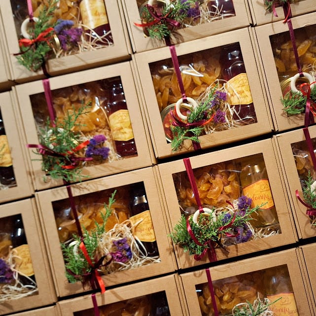 Dāvanu komplekts “Ievgravas” – sirsnīga un mīļa dāvana ar mūsu saimniecībā tapušiem gardumiem: cidoniju sīrups, sukādes un medus. Dāvana ir radīta ar mīlestību un rūpēm, lai sniegtu siltumu svētkos un ikdienā. “Ievgravas” ir dāvana, kas stāsta par vietējo garšu, dabiskumu un kopā būšanas prieku.